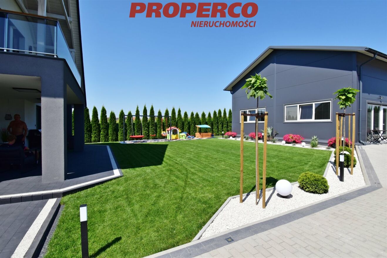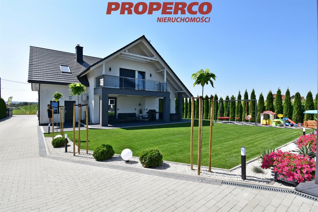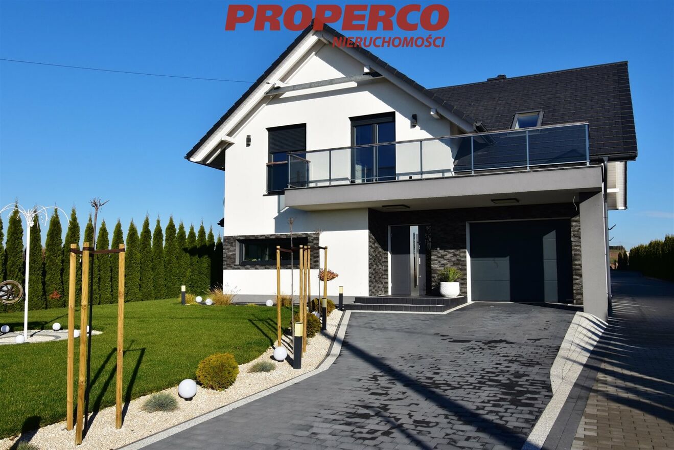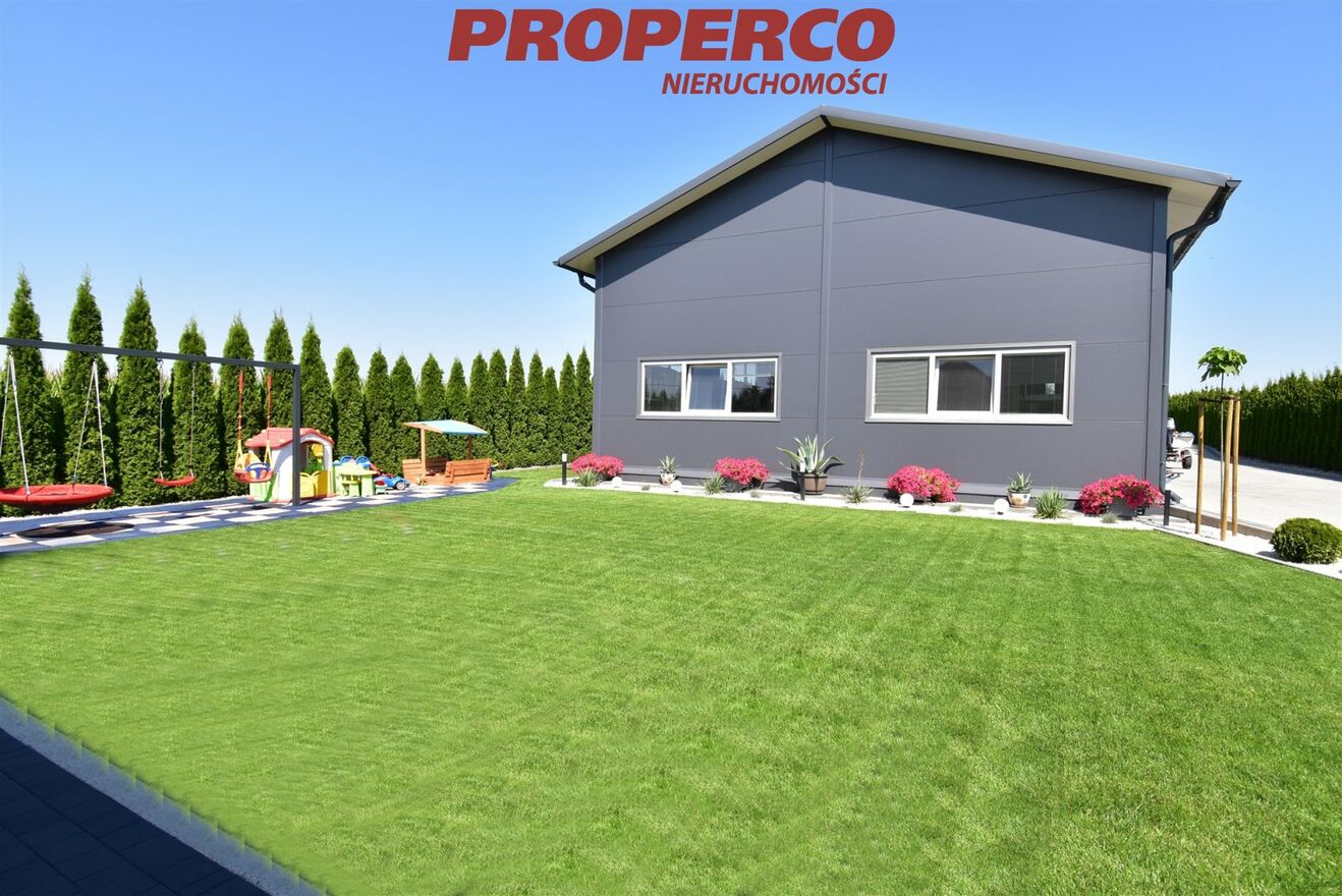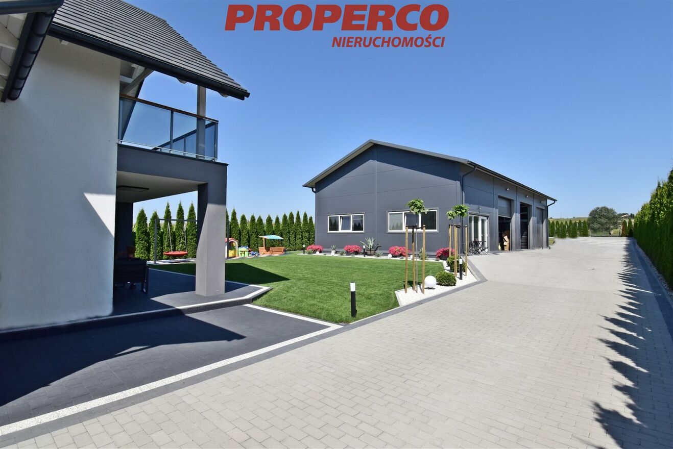 For Sale: A detached house with a usable area of 159.59 sqm (total area 185.64 sqm) located on a 6600 sqm plot in Chełmce, Strawczyn municipality. Additionally, a modern hall with an area of 200 sqm has been built on the property.