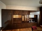 Solidna, drewniana ściana meblowa w ciemnym kolorze. Posiada wiele szafek i półek, które pozwolą na wygodne ...
